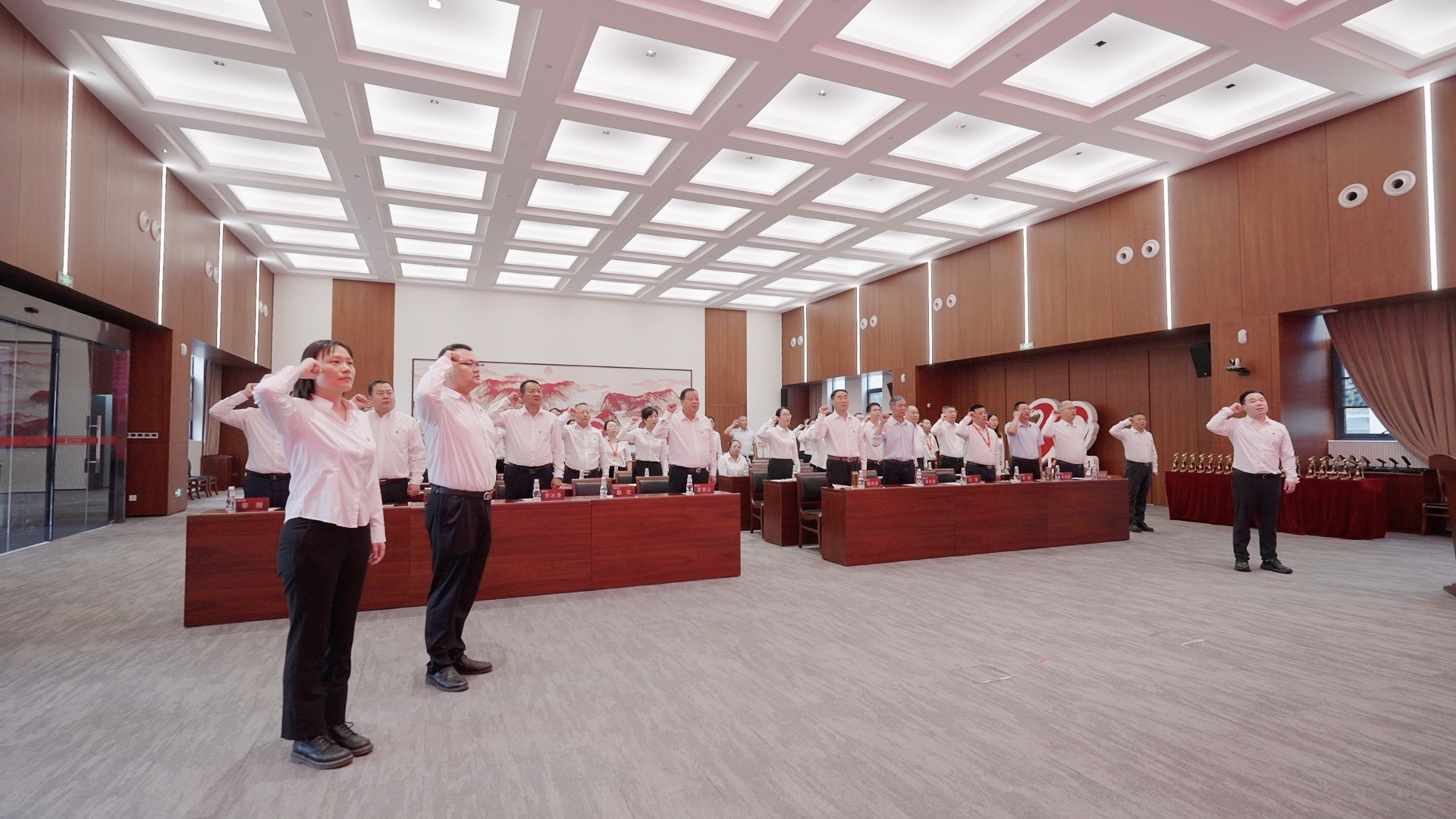 升旗儀式后,集團(tuán)總裁魏歡帶領(lǐng)2名新黨員及36名黨員代表面向黨旗莊嚴(yán)宣誓。“我志愿加入中國共產(chǎn)黨,擁護(hù)黨的綱領(lǐng)……”,字字千鈞的誓言響徹全場(chǎng),激蕩在每位黨員心間,激勵(lì)全體黨員在新時(shí)代新征程中奮勇爭先。